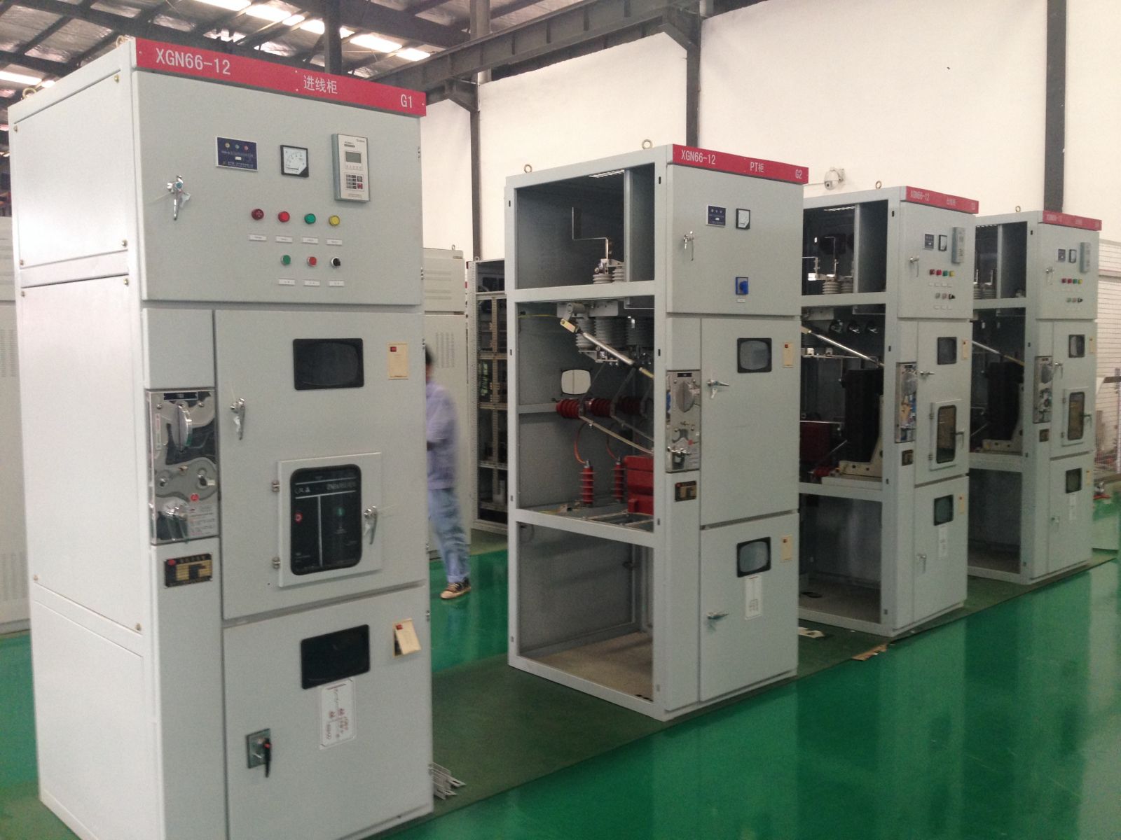 XGN66-12箱型固定式金屬封閉開關設備(簡稱開關柜)用于12kV及以下三相交流50Hz系統(tǒng)中作為接受與分配電能之用,特別適合于頻繁操作的場合,其母線系統(tǒng)為單母線(并可派生出單母線帶旁路和雙母線結構)。